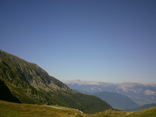 Au sommet, une vue superbe à 360° nous attendait: Vercors à l'Ouest, Meije et sublimes Aiguilles d'Arves à l'Est, Mont-Blanc et Chartreuse au Nord... Que demander de mieux ? Un chalet au sommet...