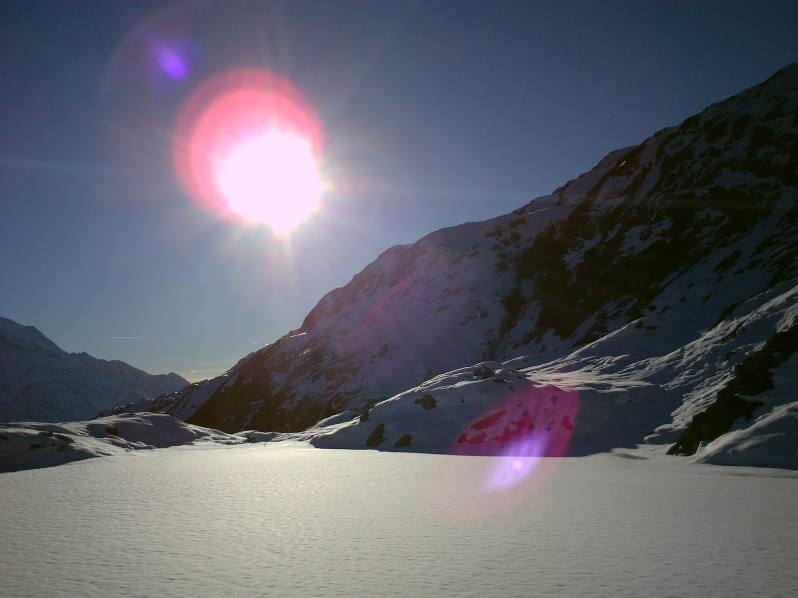 Heureusement que nous avions les Yaktrax tout de même, le sentier étant verglacé à partir de la moitié de la rando. On a même eu la chance de pouvoir luger un peu dans les pentes en aval du Lac Blanc. ça nous a fait du bien de voir un peu de neige, en attendant les nouvelles chutes...